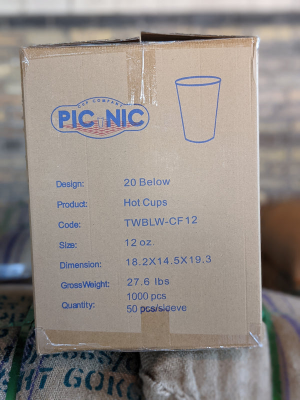 These cups are a great option for a hot beverage. Sturdy and malleable, the 12oz hot cup is a perfect ToGo option for any medium-sized drink: brew methods, lattes, teas, hot chocolate, and more! With a tasteful design by Samantha Nielsen, based on the behind-the-counter shelves at our Fargo shop.