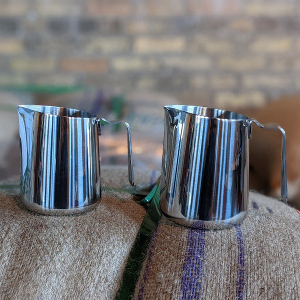 Meet Eddy Steaming Pitcher, the barista's paintbrush for pouring precise latte art. The fluted spout, unique sharp front crease, and tapered body work in tandem to Monet your milk.